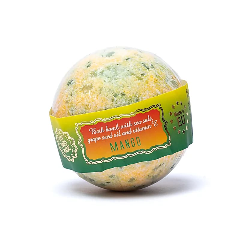 Eine handgefertigte Badebombe mit süßem, tropischem Mangoduft, die die Haut mit Meersalz und Traubenkernöl pflegt und mit Feuchtigkeit versorgt. Die leuchtenden Farben und der fruchtige Duft sorgen für ein belebendes Badeerlebnis, während Vitamin E die Feuchtigkeit einschließt und die Haut weicher und gesünder macht.