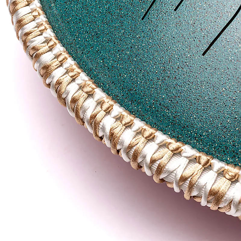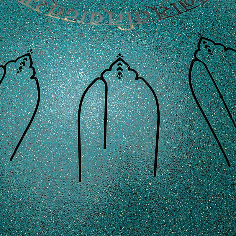 Eine 15-tönige Hybrid-Trommel, die die Eigenschaften einer Handpan und einer Tongue Drum vereint. Die Spielfläche aus Titanstahl, in lebendigem Türkis gehalten und mit einem stilisierten Auszug aus dem Herzsutra verziert, ist mit einem tiefroten Korpus aus Birkenholz kombiniert, der für einen warmen, resonanten Klang sorgt. Das Hybrid-Design verbindet die melodische Klarheit einer Tongue Drum mit der Tiefe und Projektion einer Handpan. Der Holzstopfen an der Unterseite kann entfernt werden, um ausgeprägtere Obertöne zu erzielen.