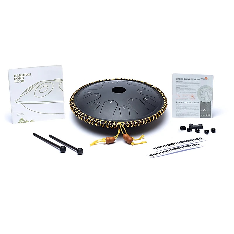 Eine stilvolle schwarze 14-stimmige Zungentrommel aus hochwertigem Stahl. Sie bietet reiche Obertöne und einen ausgewogenen Bass- und Mitteltonbereich. Ihr einzigartiges Design ermöglicht eine schnelle und klare Tonwiedergabe, wodurch sie sich ideal für Finger-Tapping-Techniken eignet. Die Struktur sorgt für eine exzellente Tieffrequenzleitung und eine schnelle Ansprache im mittleren bis hohen Frequenzbereich, die auch für professionelle Spieler geeignet ist.