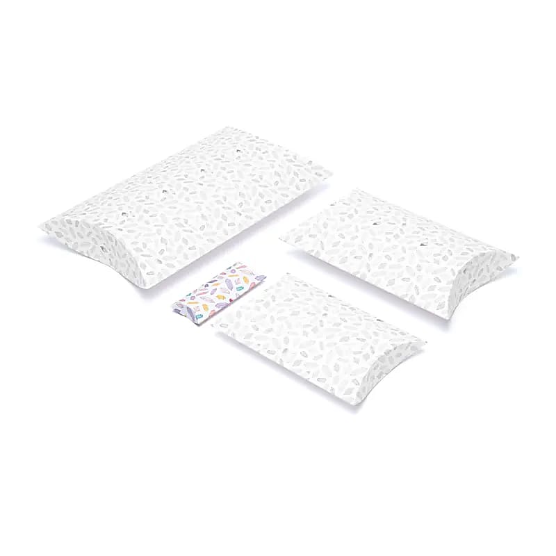 Kleine Kissenschachteln für kompakte Gegenstände wie Armbänder, Schlüsselanhänger oder Andenken, die sich für Einzelhändler eignen, die kleine Accessoires und Souvenirs verpacken.