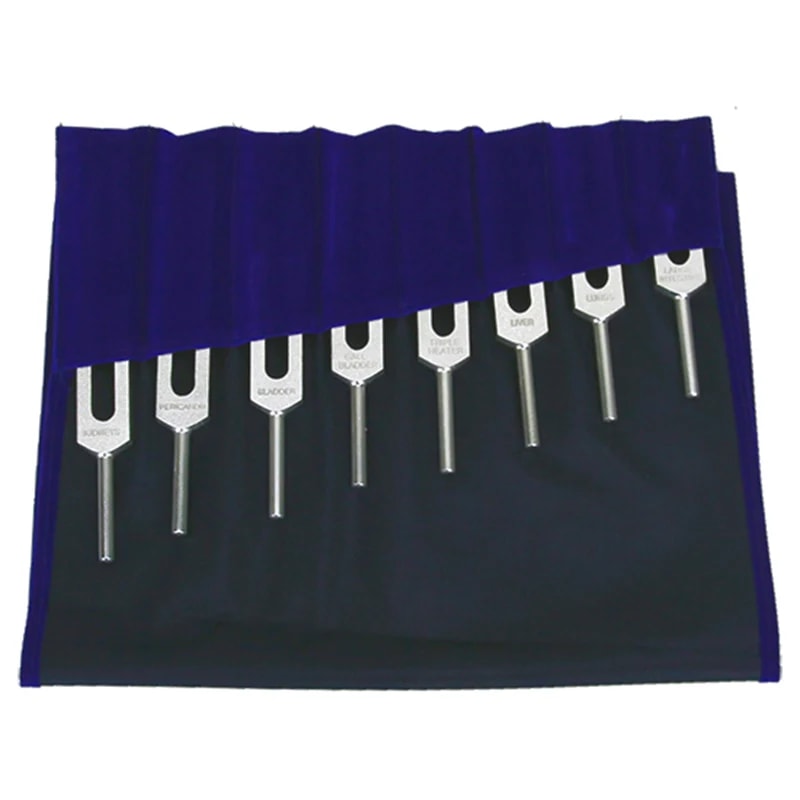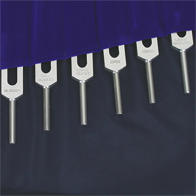 Dieses 14-teilige Stimmgabelset korrespondiert mit den 12 großen Meridianen und 2 zentralen Gefäßen. Diese Stimmgabeln können auch für die 14 großen Organe und Organsysteme gebraucht werden. Den Prozeß, mit dem man die Meridiane ins Gleichgewicht bringt, nennt man "Entrainment". Das entspricht dem Synchronisieren eines inneren Rhythmuses mit etwas Äußerlichem. Die Schwingungen der Stimmgabeln stellen die korrekten Schwingungen der Meridiane oder Organgruppen wieder her, um so eine Homöostase zu erzielen.