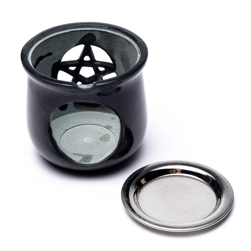 Räuchergefäß Pentagramm Speckstein schwarz Sieb